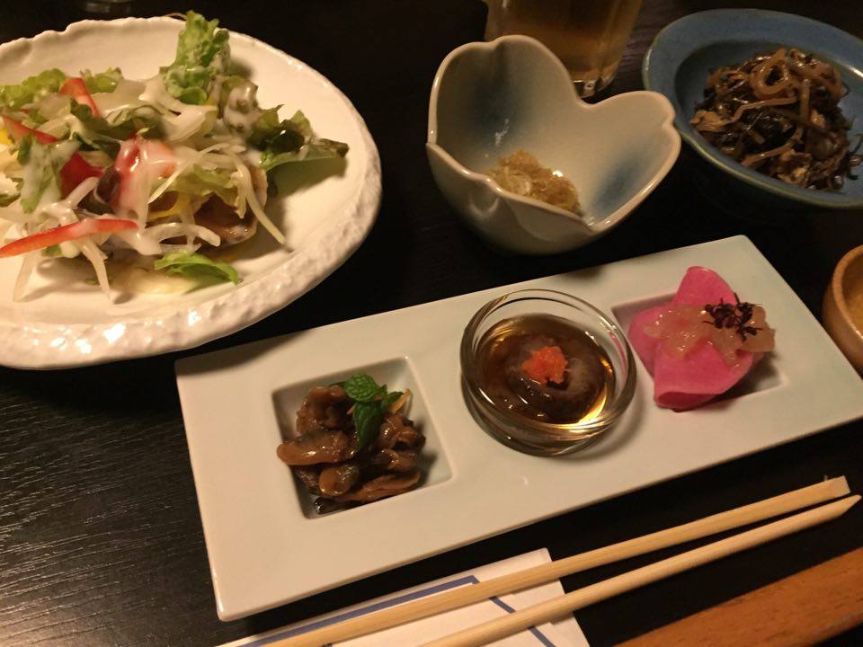 2016年2月9日blogyoko 温か〜い 昨夜はユーフィットをお休みして 4人でお出かけです。 すごーく冷え込む夜です。 一人は風邪気味、一人は遠方からなので 時間を決め2次会なしでの食事会です。 アサリの佃煮、ナマコの酢の物、赤かぶの クラゲのせの長皿。 ブリの南蛮あえ、生たらこの味付け、 ひょうの煮物。 おさしみ さばの照り焼き 大きな丼の汁物。 3人は大満足、でも私は、、、。 でも、予算内でお腹いっぱいのこのお店。 風邪気味の人には卵と熱燗で卵酒のわがままも すんなり聞いていただけましたし、温か〜い 雰囲気で人気があるのがわかりました。
