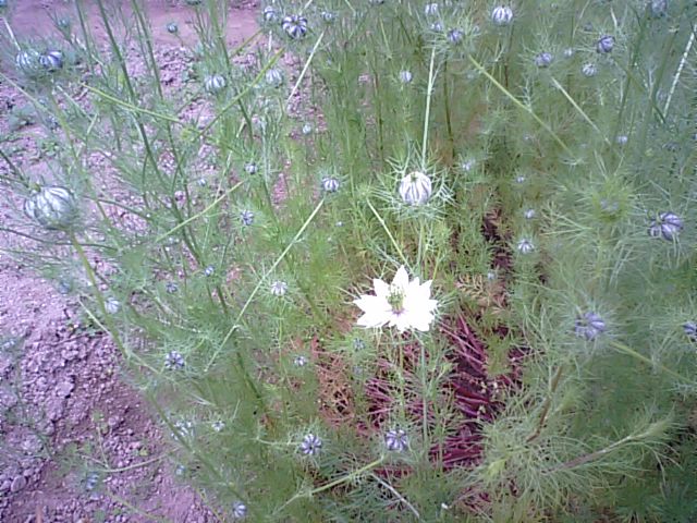 ニゲラもやっと花をつけたので玄関に飾って。