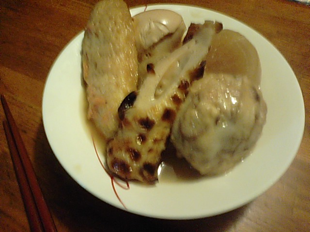 私は残りのおでんとパン。