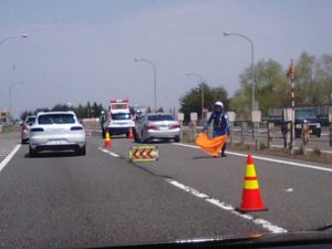 2017年5月1日blogyoko 岩手へ 岩手へ向っています。 岩手山が大きく見えてきました。 順調に走れています。が 渋滞2キロの表示のあと事故現場 私たちも少しスピード落として目的地へ 向いま〜す。