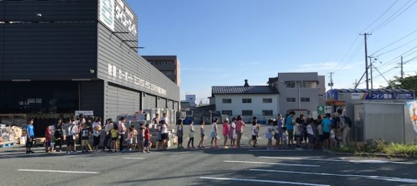 2017年8月4日blogyoko ラジオ体操 近くのダイユーエイトで子供達のラジオ体操。 終わったあとは1列に並んでご褒美をいただく のかな。 ここは子供だけでなく大人も多く参加して います。 朝に電話や来客が多くなり、留守にできず 散歩もできない状態が続いていますから、 ラジオ体操にも参加できなくなっています。