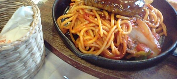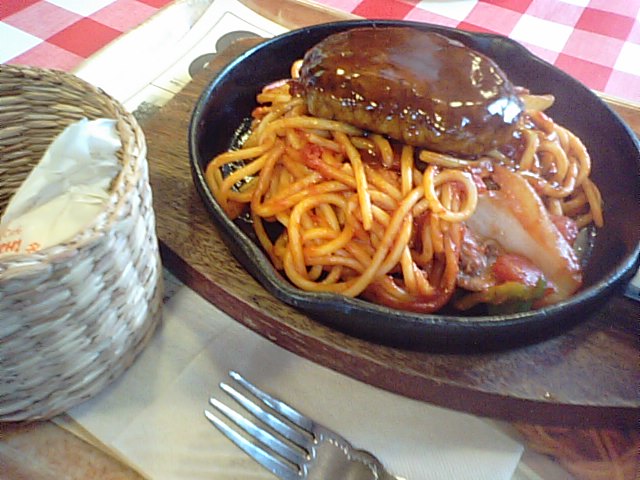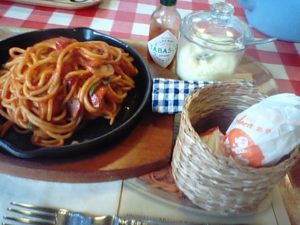 2017年8月17日blogyoko 日本一のナポリタン 雨の中、秋保温泉の方へ向っています。 高い所ダメな私ですが、足がすくむのを我慢して 大滝を眺めて。 目的の場所です。 日本一のナポリタンのお店です。 お昼時間帯でしたが、雨のせいか15分程度の 待ち時間で席へ。 ナポリタン温泉卵付きです、 900円。 ハンバーグのせ温泉卵付き、1150円。 太麺でしっかり味が付き腹持ちばっちりでした。