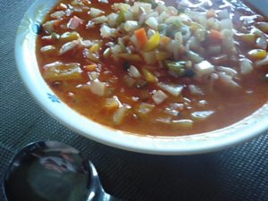 2017年8月17日blogyoko 食べたら出かけます 広告見たらイモテンでほしいものが あります。 並ばないと購入できなそうです。 では、朝食はぱっぱっと食べられる いつもの中華粥。 相棒の生真面目さがでているかのような 野菜の切り方。 熱々で辛〜い! 食べたら出かけま〜す。