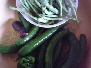 2017年8月10日blogyoko 長靴を履いて 散歩から戻ったら、長靴を履いて畑へ。 まだ葉っぱも濡れているので、ほんの10分程度 で、あとの野菜は明日にでも。 二日間収穫しないときゅうりが大きくなり過ぎ。 仕方がないので佃煮や炒め物に。 明日から畑片付けも開始で〜す。