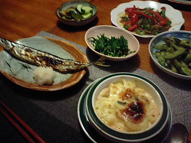 2017年8月21日blogyoko 生サンマ 今年初、生サンマが届きました。 今年はかなりお高いそうです。 有難く頂戴いたします。 で、さっそく夕食に。 生サンマ超美味しいで〜す。 あとは昨夜のホタテグラタンが好評だった ので、今度は鶏肉のミニトマト入りグラタン にしてみました。