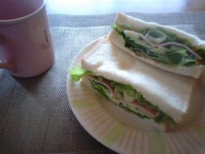 2017年10月2日blogyoko 半分づつで まるごとマラソンが始まります。 役員は7時20分集合。 12時まで道路通行止め。 なのに1時近くになっても帰宅しない相棒。 やっと帰ってきましたが6時間も外で 立ちつづけ、暑さで疲れ切っています。 日曜の午後から青森からお客様が来る予定で お昼を約束しているけど、お腹もペコペコ。 その後お客様と出かけたのが2時過ぎ。 サンドイッチ半分づつでちょうど良かった で〜す。