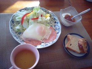 2017年11月6日blogyoko また1週間の始まり 早く休んだので朝の3時半頃には目覚めです。 でも、じっと我慢して5時頃まで。 6時にはいつものように始動です。 二人で畑にネット張りタマネギの苗植えです。 体は感じないのですが、作業用手袋をして いても指先が超冷たいです。 あとは大根の収穫だけです。 7時過ぎに終わり、今日はパンで朝食です。 コーンスープが体を温めてくれます。 また1週間の始まりで〜す。