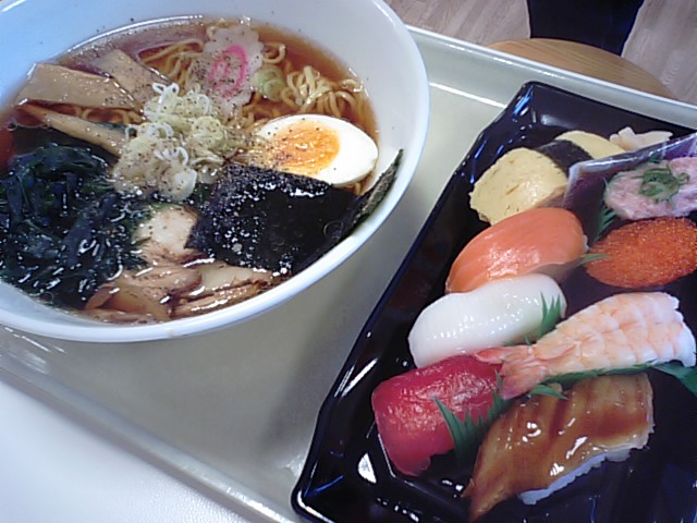 2017年11月13日blogyoko 予想外の展開 やまぶどうがダメで次の老舗の蕎麦屋さんは 貸切です。 では、3番目の候補、産直あぐりでバイキング でも、もう2時すぎで閉店。 もちろんランチですからあたりまえですが。 仕方ない、お腹が空きすぎて家まではもたない! 少し戻ってヤマザワへ。 店内からお寿司とかき揚げ、ご飯を購入して ひまわりらーめん。 今回の昼食はお店3軒ともダメの予想外の展開。 でも、私たちにはこのランチが一番似合って いるのかもとつくづく思いました。