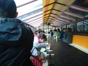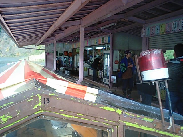 2017年11月13日blogyoko 舟下り2 船頭さんの挨拶と同時に出発。 全国で2箇所だけの自然杉。 1箇所がここだそうです。 いつも見ている杉とは違います。 途中水上コンビニに寄って パインサイダーと鮎の塩焼きが人気だそうです。 寒いせいか混んでなくゆっくり座れます。 たくさんの滝を見て、最後は白糸の滝。 約1時間の舟下りで往復券でしたがザーザー雨が 降っているわけでもないですが帰りは運行無し。 バスにて戻っています。 もちろん、往復券だったので無料で。 では、着いたら次の目的へ。