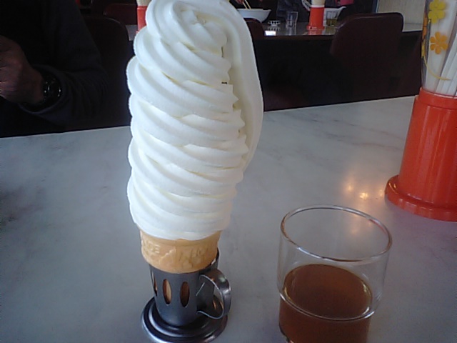2017年12月4日blogyoko これで180円 さすが、大食堂というにふさわしい感じです。 昔懐かしいデパートの食堂です。 200人以上は食べています。 ソフトとナポリカツが一番人気らしいです。 ナポリカツ Aセット ソフトクリームがすごい事になっています。 普通の倍以上、これで180円はすごいです! うわさ通りのお店でした。