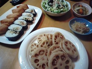 2018年2月13日blogyoko お疲れの ヘトヘトになって帰宅しましたが、お雛様を 飾ったので、形ばかりのおいなりさんと 海苔巻きを作って、あとはレンコンの肉詰。 明日は雪が降らない事を願いながらの 夕食です。 お疲れの連休最終日でした。