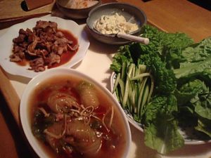 金曜の夜は白菜のあん掛けと焼肉。
