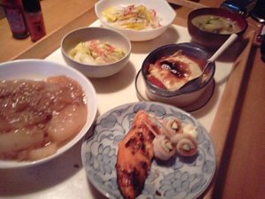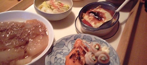 2018年2月19日blogyoko 好評です 会員さんのKさんから教えてもらった 味噌マヨネーズをのせて焼いた鮭が好評です。 冬瓜は冷凍庫から出してきてあん掛け、 あとは自家製のトマトソースのラザニア。 料理をするのは昨夜まで、月曜からお一人様 なので、単品のみの食事の予定で〜す。