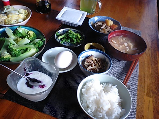 2018年3月7日blogyoko ブラインド 残りものばかりですが、皿数があると 案外立派に見える朝食です。 隣の新築住宅の大工さん達が今日は珍しく 誰もきません。 ブライド降ろす事なく明るい所で いただいてきました。