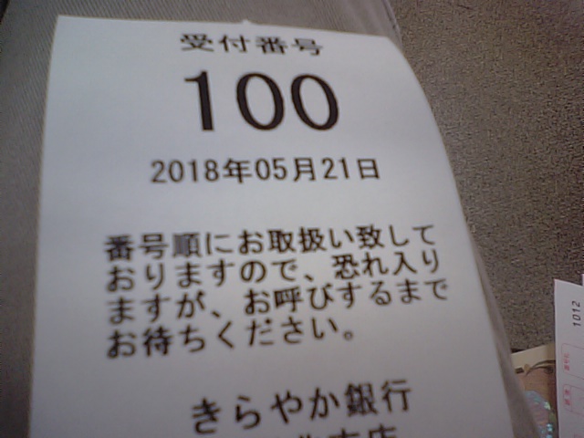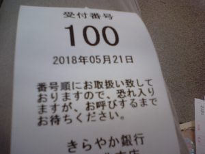 2018年5月22日blogyoko 100番 いつもは午前中のうちに銀行へ行くのですが 昨日は朝から2時近くまで予定が入っていて 午後から出かけてきました。 100番ってなんか、嬉しいです。 だから何かがあるわけでないのですが。