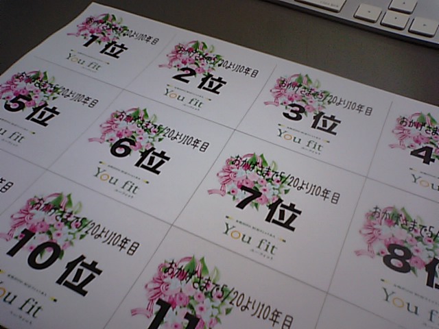 2018年5月9日blogyoko 順位逆転 我が家の台所のテーブル、ビックサイズ なのでビンゴゲームの袋詰めには最適。 終わったのはいいけど、台所に置いておくには 埃をかぶると悪いので、和室に移動。 うっかりです。 1位は袋の内容が大きいので大丈夫なのですが、 2位と3位、4位と5位が移動時に逆転して しまったかも。 袋に早くこのシール貼っておけば良かった のですが。 今さら仕方ないです。 順位逆転している場合お許しを、、、。