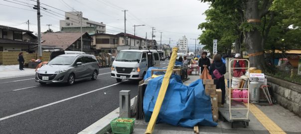 2018年5月8日blogyoko 最後の植木市 時間があるので散歩です。 今日から植木市です。 薬師堂にもお店がスタンバイです。 道路にも早朝からお店の準備の方達が ワイワイし始めました。 今日から三日間、雨の予報はないですが、 平日の三日間なので人出はどうなるか。 事務所7月には引越し予定なので ここで見る最後の植木市。 明日にでも楽しんできま〜す。