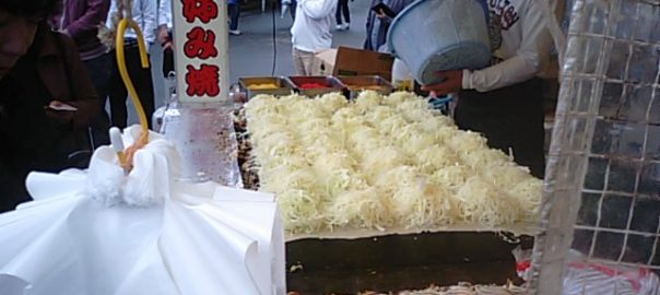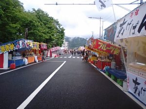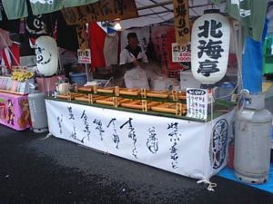 2018年5月9日blogyoko 植木市 植木市二日目。 昨夜はさすがに混んでいましたが今日も 小雨で人がまばらです。 天気予報あたりませんね。 ここだけは行列です。 にぎり天の看板にひかれて。 おにぎりの天ぷら?天ぷらがおにぎりの中? 全然違いました。 串さしされたさつま揚げでした。 植木市だけど鉢植えが売れるようです。 ちょっと寂しいお昼時間の植木市でした。