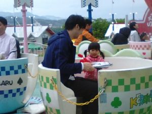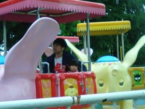 2018年5月7日blogyoko リナワールド 小雨降る中、朝一にリナワールドへ。 2歳児なので無料ですが乗り物限定です。 太鼓はじいじと。 パパとしたことがあるから慣れています。 寒いので11時頃には終了で〜す。