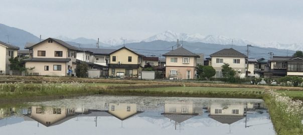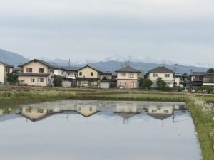 2018年5月23日blogyoko 住宅が 住宅が田んぼに。 水が入った事でこんなに綺麗にうつって います。 ちょっと感動ものです。 でも朝だから綺麗と思うのですが、 夜になるとカエルの合唱でかなりうるさい でしょうね。 カエル苦手なので田んぼがそばになくて 良かった。 なんて思いながらテクテクでした。