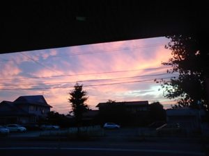 2018年7月18日blogyoko 夕焼け 夕方、急に暗くなったと思ったら、今度は パーと明るくなり、なんか変な天気です。 トレーニングを終えたUさんがドアを開けた とたんに夕焼けが目に飛び込んできました。 7時過ぎの空です。 館内にIさんを残してパチリです。 最終のIさんとおしゃべりしながら定時前に ユーフィット閉館でした。