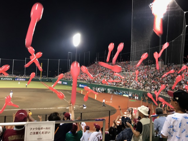 2018年7月11日blogyoko 試合の様子 昨日のきらやかスタジアム。 6時からの試合開始ですが、始まる前には グッツを買い求める方がたくさんいたそうです。 佐藤市長の始球式。 楽天が逆転して勝った時の様子。 かなり面白かったようで〜す。