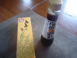 2018年7月9日blogyoko つけタレに 印役町の深瀬善兵衛商店の若奥様から 梅ようかんと梅酢だし醤油をいただきました。 ようかんはスタッフのおやつに、だし醤油は 我が家に持ち帰り、最近定番のレタスしゃぶの つけタレに使うつもりで〜す。