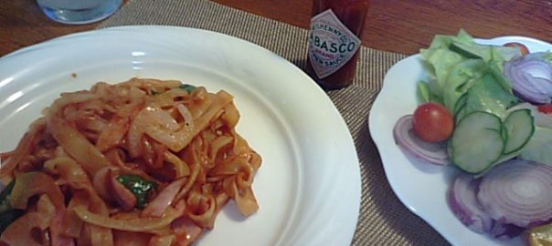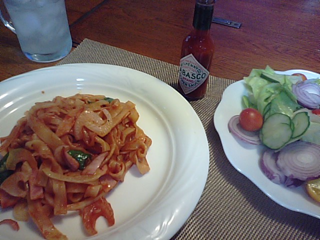 2018年8月20日blogyoko 反省 夜もお一人様。 生パスタのナポリタンです。 茹で時間150秒と表示されていたので その時間で取り出しケチャップで 絡めたのに超硬いです。 味見?をしなかった自分に反省で〜す。