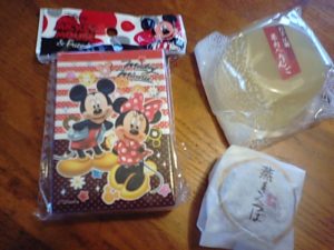 2018年8月28日blogyoko 私の元へ 研修旅行に出かけていた相棒帰宅です。 お土産はお部屋にあったお菓子2個と ゲームでいただいたミッキーのトランプ。 どこに行っても我が家はお土産はなしです。 ですから、旅行用のおこずかいはそのまま 私の元へ。 トランプはもう少し大きくなってから 孫ちゃんへ。 お菓子はきっとそのままになるので 早め相棒へ勧めま〜す。