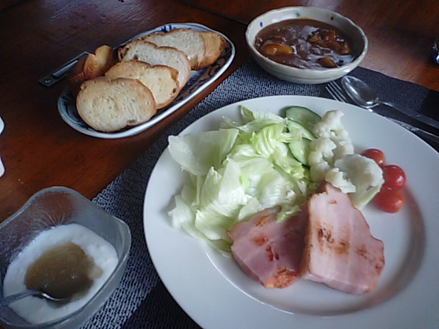2018年10月1日blogyoko 大変です 厚切りベーコンとフランスパンの朝食。 スープはカレーです。 美味しくいただきました。 コーヒーを飲もうと立ち上がったら 大変です! エプロンのポッケにおタマがひっかかり カレーのお鍋が。 洗濯終わったばかりなのに着ている物 カレーまみれなってしまいました。