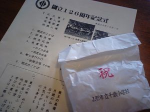 テーブルの上に昨日相棒が参列した千歳小の