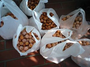2018年11月5日blogyoko 頑張りました 土曜の朝は散歩ついでに銀杏拾い。 右も左も霧で真っ白です。 たくさん拾ってきました。 この後が大変なんですが。 やっと洗い終えて日干しです。 腰とふくらはぎがパンパンです。 チーンして塩をかけて食べるつまみのために 腰痛にも負けず頑張りました。