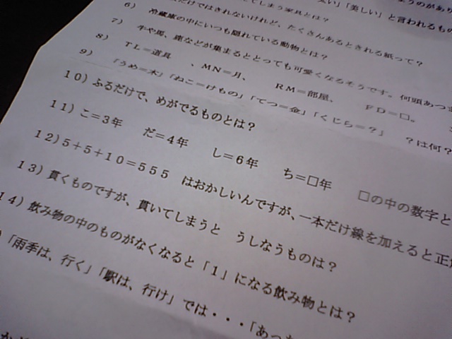 2019年1月16日blogyoko クイズ形式の クイズ用紙を渡されました。 ほとんど答えが出ません。 かなり頭が固くなっているようです。 であれば、今度ユーフィットのイベントに 使ってみようかと考えています。 来月あたりにクイズ形式のイベント! 楽しくはないでしょうが、皆さん必死に 考えてくれそうで〜す。