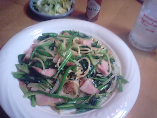 2019年2月5日blogyoko 野菜がたっぷり 年末年始とお仕事が忙しく休会されていた Aさんが来館です。 いつもと変わらずニコニコ笑顔です。 でもまだお忙しく、ちょっとお疲れ気味とか。 定時に帰宅し、お一人さま夕食。 オリーブ油たっぷりのほうれん草パスタ。 野菜がたっぷりだけで満足な私でした。