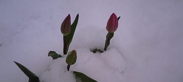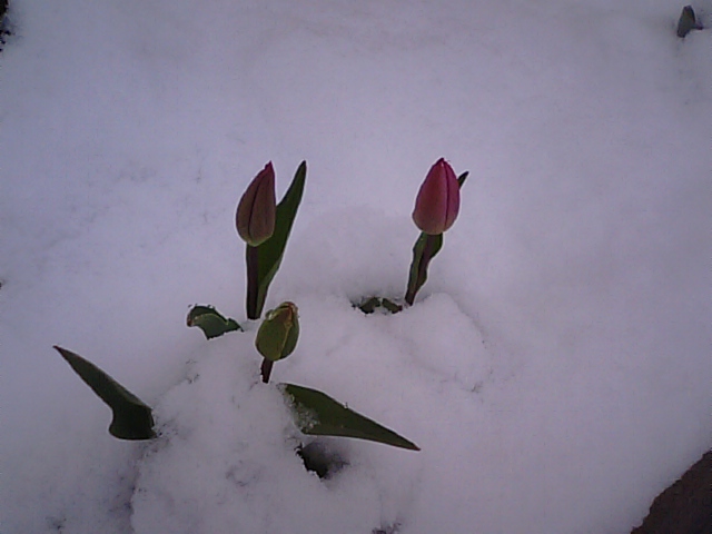 2019年4月11日blogyoko 赤いチューリップ 寒くて目覚めたら、すごい雪です。 タイヤ交換もして鉢物も外へ出した後なので あ〜、ため息です。 鉢物がダメになってしまったかもです。 赤いチューリップがやっと咲こうとして いたのに、、、。
