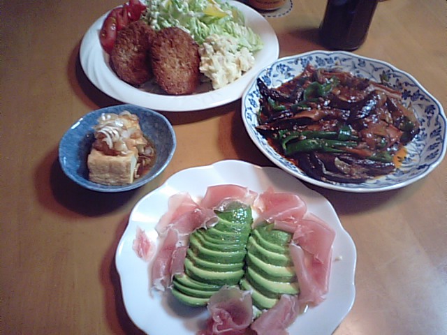 麻婆ナスにコロッケを揚げただけ。