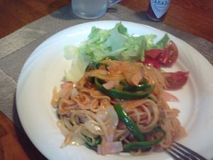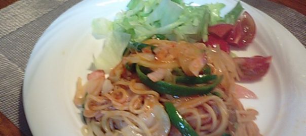 2019年5月10日blogyoko 簡単レンジレシピ 昨夜は植木市の影響か、夜の会員さん達が かなり少ないです。 定時で帰宅予定だったのにかなりの渋滞です。 遠回りしてやっとの帰宅です。 少し遅くなったのでパッパッとできる夕食。 Aさんから簡単レンジレシピをネットで送信 してもらったので、さっそく作ってみようと 思ったのに、粉チーズを切らしていました。 カルボナーラからナポリタンになってしまった お一人様夕食でした。