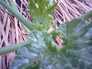2019年5月20日blogyoko 約2時間半 ジャガイモの芽かき終了(相棒ですが) 豆が出来てきました。 サンチェも時期に食べられます。 可愛いズッキニーが出来始めています。 約2時間半の雑草取り終了で〜す。