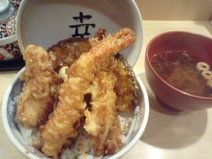 2019年7月2日blogyoko 天丼 1時過ぎに高田馬場へ タラコと生姜が食べ放題のてんぷら屋さん。 えびのやです。 この銅鍋で1個づつ揚げてくれます。 一番人気はもう少し盛りが多いのですが、 朝ごはん、蕎麦とパン2回も食べてしまった ので、少なめの天丼を注文です。 天ぷらは器の蓋へ寄せて、ご飯はタラコで。 天丼半分、タラコご飯半分2回味わって きました。