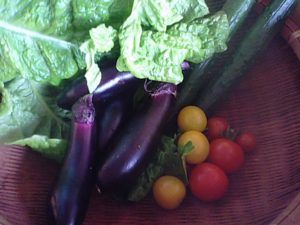 2019年7月9日blogyoko 少しづつ サンチェ、ミニトマト、キュウリ、ナス。 少しづつの収穫です。 ジャガイモの茎が倒れてきました。 天気が良ければ、そろそろジャガイモ掘り しなきゃと横目で見てきました。