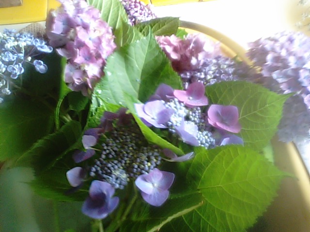 2019年7月3日blogyoko 紫陽花 3日間畑に収穫に行ってないので、やはり きゅうりは巨大化していました。 裏庭の紫陽花が今見ごろです。 畑にもまだまだ花がいっぱいですが、 今日は部屋中、紫陽花を飾る事に。 ちゃんと水が上がってくれると いいんですが。