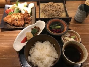 2019年7月2日blogyoko 山賊焼き 食べログで探していたお店。 お昼も遅くなったし、駅近くなので 平日限定ランチ、山賊焼き定食。 玄米入りご飯、そば、惣菜、コーヒーが ついて1300円税抜き。 山賊焼きはニンニクを効かせた鳥もも肉。 この辺では必ず目にするメニューです。 少し苦目のコーヒーをいただき東京へ 戻りま〜す。
