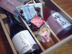 今度はお酒や漬物の詰め合わせが。