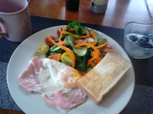 二人ともお昼を食べ過ぎたので夜は野菜だけ。