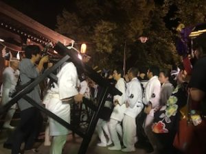 2019年8月2日blogyoko すごい 昨夜は会員さん達もお祭りでしょうか。 来館が少ないです。 ステップをする事より雑巾を持って 掃除の時間でした。 定時前で終了したので私もお祭りへ。 夕方4時ごろから始まった神輿行列が 両所の宮へ戻ってきたのが8時ごろ。 境内に入ると 月山と鳥海山の神輿が担ぎ手も入れ替わりで すごいです。 これは見る価値ありで〜す。