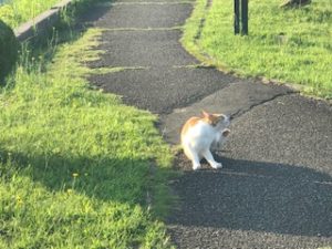 土手沿いテクテクしていると先日の猫です。