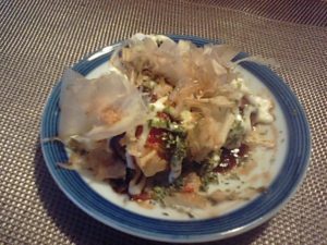 2019年8月5日blogyoko たこ焼き 花笠祭りの前夜祭。 七日町をウロウロしようかの予定でしたが とにかく暑い!!! 年のことも考えて、エアコンかけて自宅で ひきこもりです。 部屋が冷えているので、今度は熱々の たこ焼きが食べたくて。 お酒のつまみは青南蛮の煮た物と塩辛。 たこ焼きパクパクで〜す。