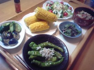 2.茄子を蒸して(レンジ)縦切りにし柚子胡椒で
