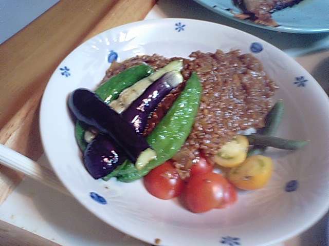 2019年9月2日blogyoko ドライカレー 冷酒に合うように土曜の夜は鯛の塩焼き。 ちょっと焦がしてしまいました。 そして、鯛を焼いている間に今度は メニュー変更です。 どうしてもカレーが食べたくなり 夏野菜とともにドライカレーです。 冷酒と白ワインをごちゃで〜す。