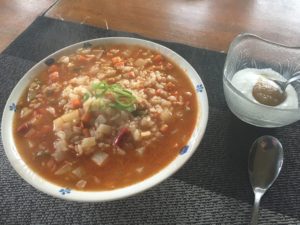 2019年11月18日blogyoko 最後は 散歩から戻ってマシーンでカプチーノ。 そして相棒にお願いして中華粥の朝食。 この辛さがたまらないです。 ただ、いつもよりご飯の量が多く、、、。 作ってもらったからには食べ残すわけにも いかず、最後はちょっと大変で〜す。